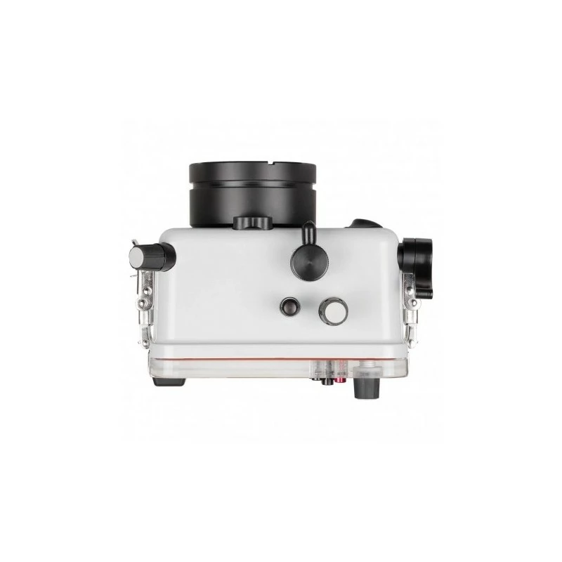 Caisson au design en polycarbonate gris & porte arrière transparente permettant une vérification de la bonne position du boîtier photo & des leviers de commande dans le caisson.