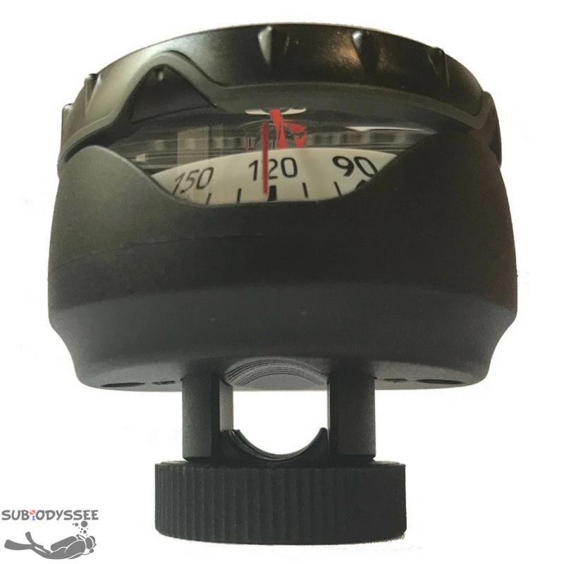 Sur la partie supérieure se trouve une ligne de foi de couleur rouge. Une couronne crantée tournante & possédant les mêmes graduations, permet de mémoriser la route.