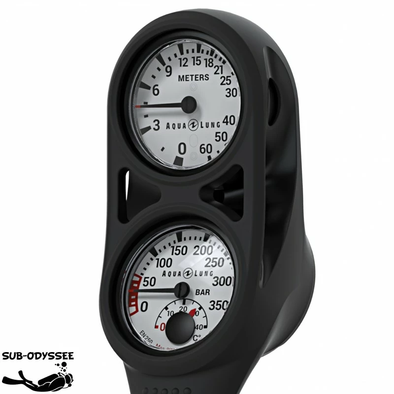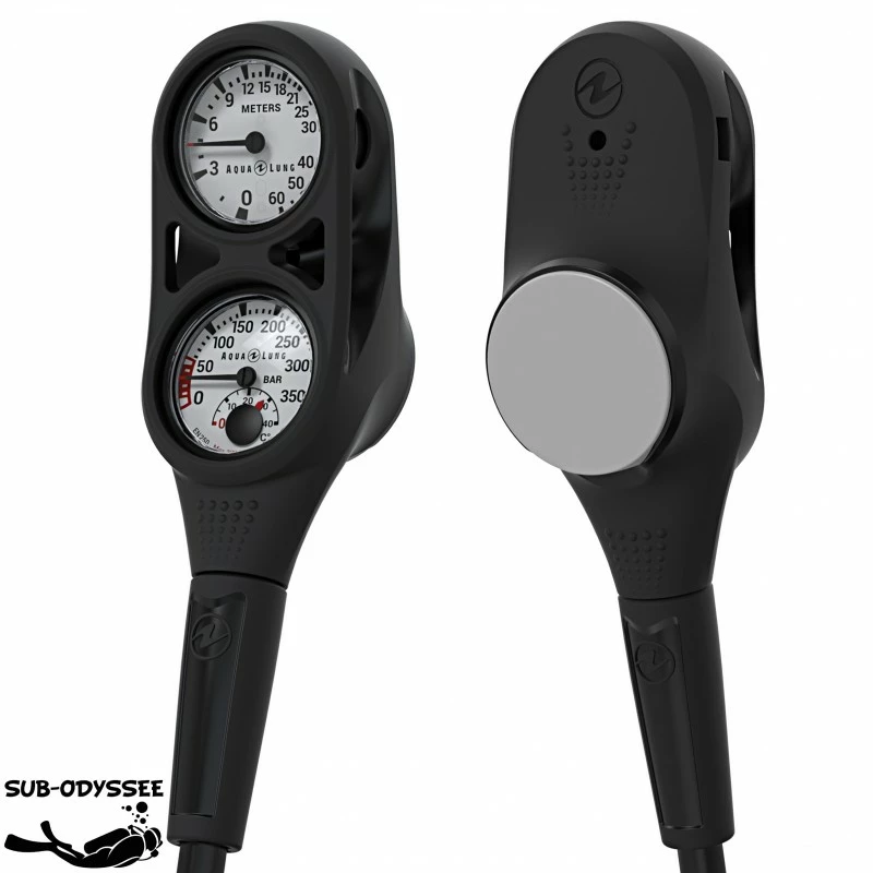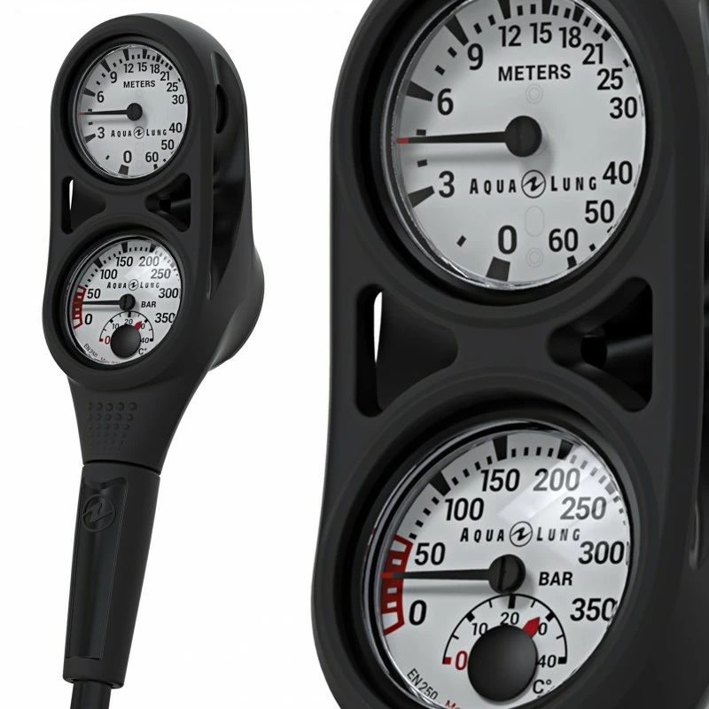 Le profondimètre Aqua Lung, avec sa graduation de profondeur spécialement conçue & son cadran luminescent, permet une lecture plus facile d’un seul coup d’oeil.