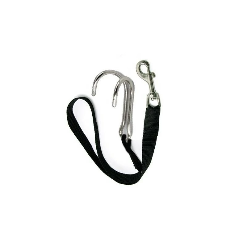 La sangle se replie sur elle même & reste maintenu repliée par un velcro ce qui rend le crochet trés compact.