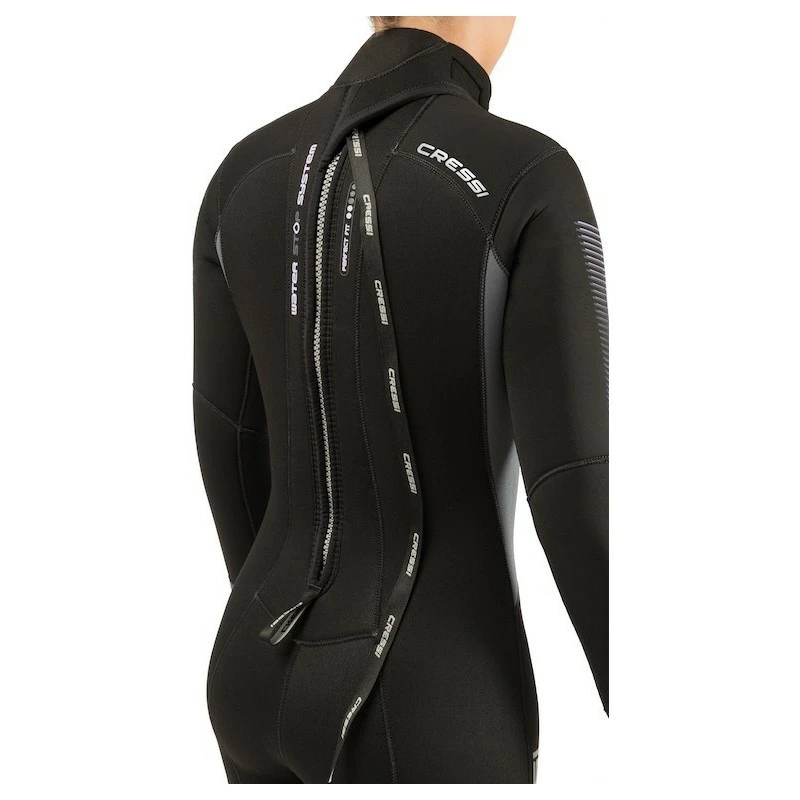 – La fermeture arrière YKK® possède le système d’étanchéité Acquastop® avec néoprène lisse interne sous la fermeture à glissière pour minimiser l’infiltration d’eau. Le rabat de fermeture est maintenant beaucoup plus large & la région de la nuque se prolonge pour éviter les infiltrations lorsque le cou est incliné sous l’eau.