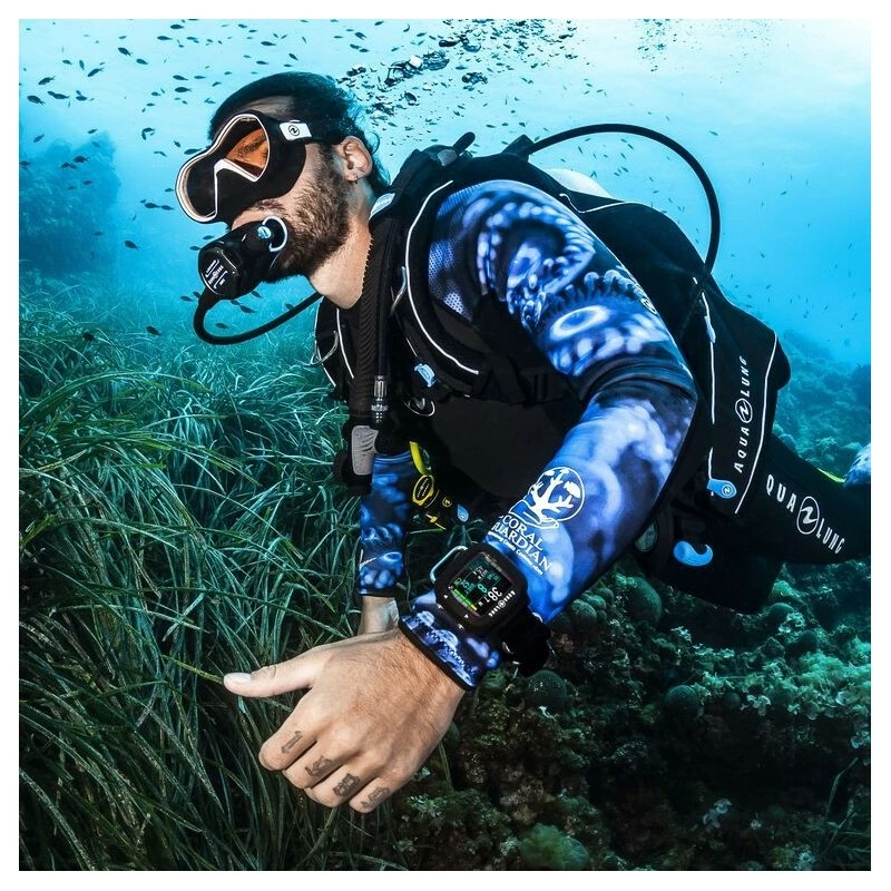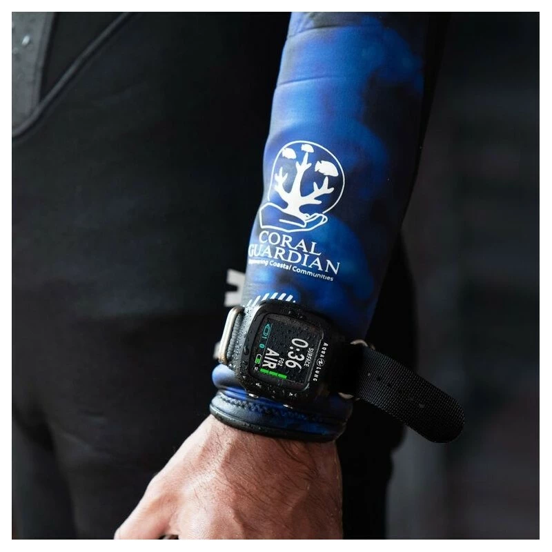 – Conception imprimée sur le poignet pour aider à garder les ordinateurs de plongée en place.