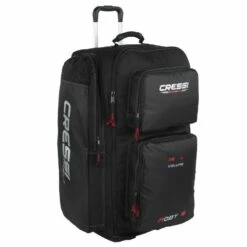 – 2 grandes poches à soufflets sur le devant, avec des fermetures à glissières, 2 poches latérales pour les palmes & 1 petite pochette sur le dessus pour l’adresse.