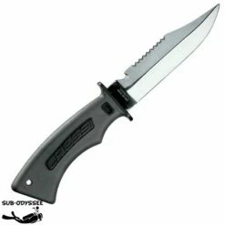 Lame en acier spécial inoxydable trempé, avec un fil lisse d’un côté & partiellement cranté en scie de l’autre. Celui-ci se termine prés du manche par une échancrure coupe filets ou lignes de pêche.