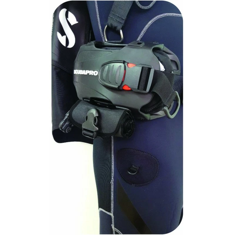Peut être montée sous les poches à lest, aux points d’attache du système de fixation multiple du gilet de stabilisation.