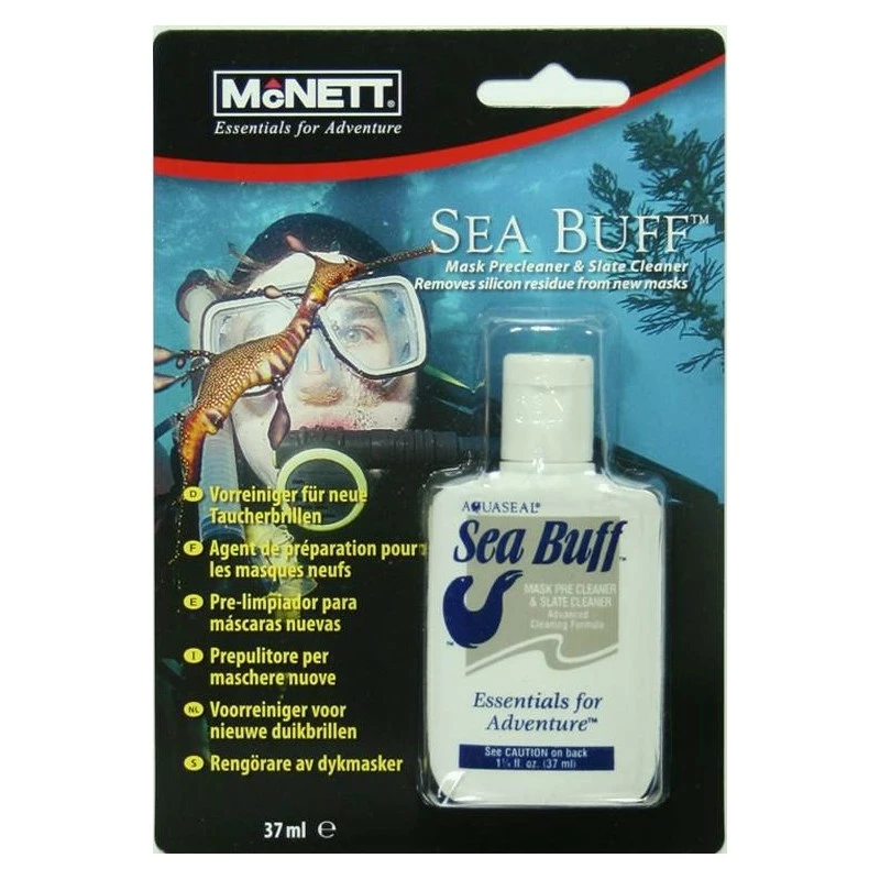 Le Sea Buff™ de Mac Nett est un préparateur indispensable pour masque de plongée neuf, ou pour un ancien masque s’il n’a jamais été traité & qu’il fait de la buée constamment.