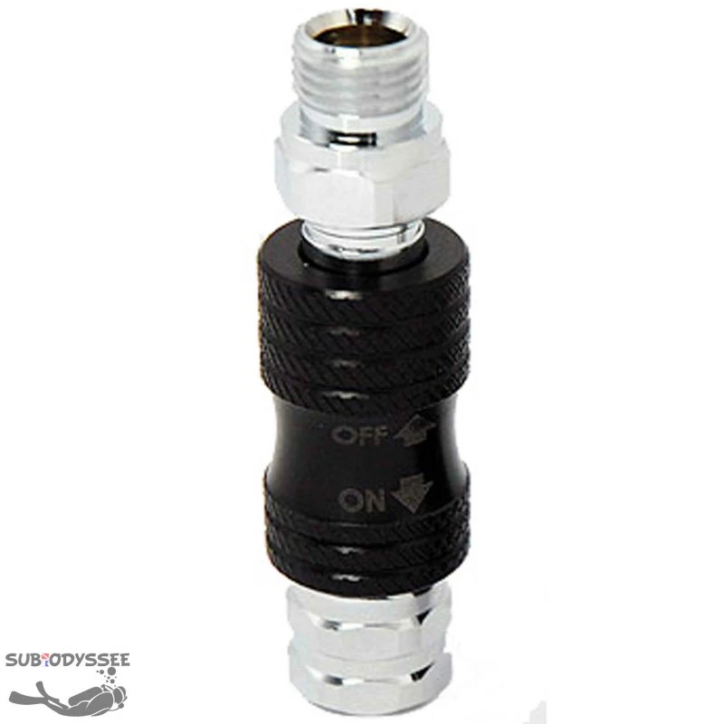 Pour ne pas perdre trop d’air, il suffit alors de faire coulisser la bague du « Stop Flow » pour arrêter le débit. On peut alors continuer à respirer sur son détendeur de secours.