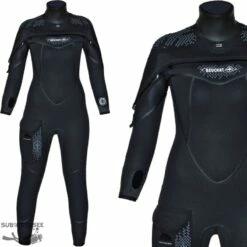 – Zip étanche plastique TiZip (Zip TiZip MasterSeal 10 Plastic Dry) en position frontale de bras à bras support souple pour plus de facilité d’habillage/déshabillage & plus d’aisance pendant la plongée.